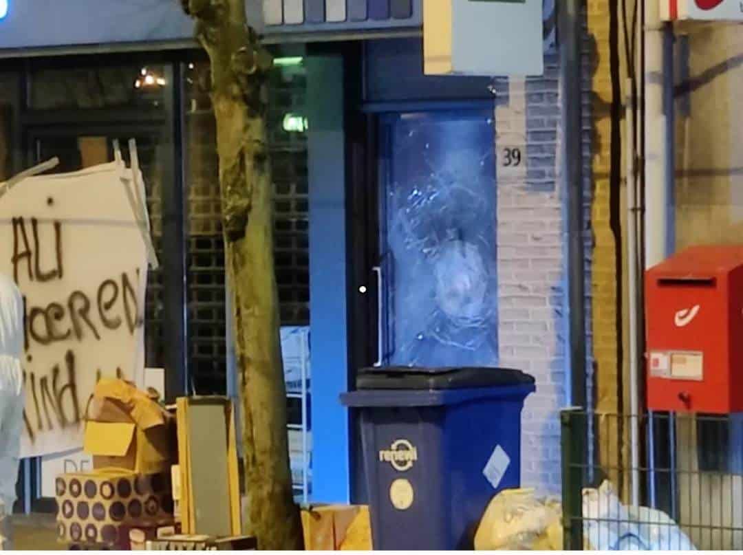 حيث أطلق الجناة النار على المبنى وألقوا أيضًا شيئًا قابلاً للاشتعال على الباب الأمامي. كما وضعوا لافتة كُتب عليها باللغة الهولندية “Ali hoerenkind dede” وهذه شتيمة لذالك لا نُريد أن نكتب معناها. وتم الإشارة بها على أحد سكان المبنى وإسمه “علي يو” البالغ من العمر 33 عام.
